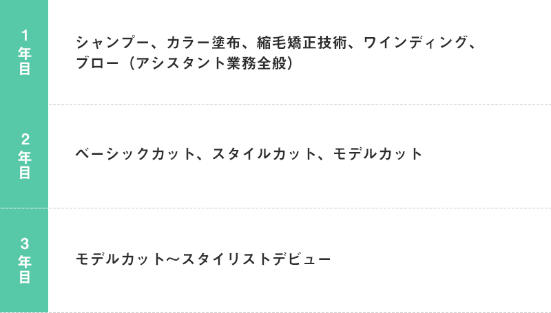 弊社の教育システムを通じ着実にスキルアップできる体制を整えていますのでご安心ください。私たちは人との繋がりを大切にして、日々知識と経験と技術力の向上に努めるとともに、お客様、スタッフ双方が楽しく、心地よく過ごせるサロンを目指しています。